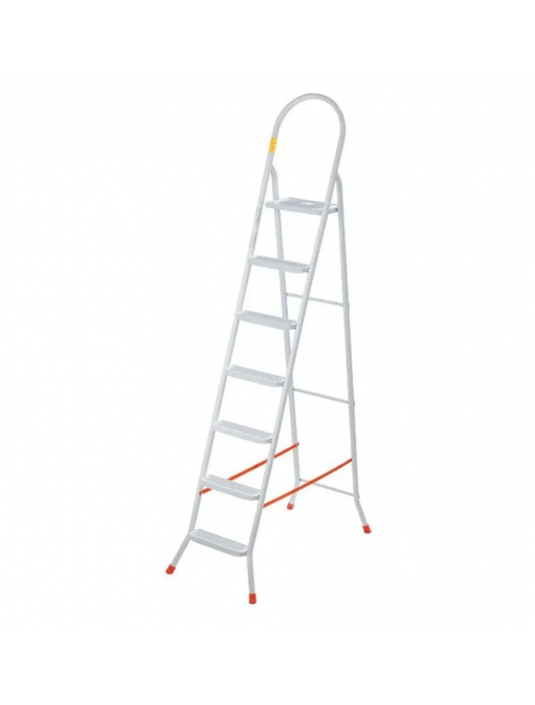 Escada resistente e prática, ideal para tarefas domésticas e profissionais. Fabricada em aço carbono com pintura epóxi, possui 7 degraus largos e antiderrapantes que oferecem maior segurança. Estrutura dobrável, fácil de armazenar e transportar.