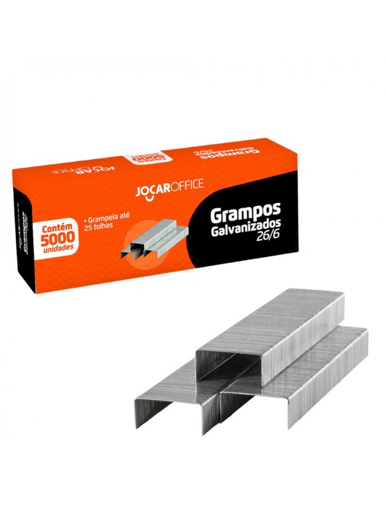 Grampos metálicos 26/6 ideais para uso em grampeadores manuais de pequeno e médio porte. Embalagem com 5.000 unidades, perfeita para garantir produtividade e reposição constante em escritórios, escolas e ambientes comerciais.