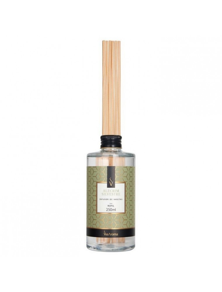 Deixe seus ambientes mais agradáveis e acolhedores com o Refil para Difusor de Varetas Alecrim Silvestre 250 ml – Via Aroma.