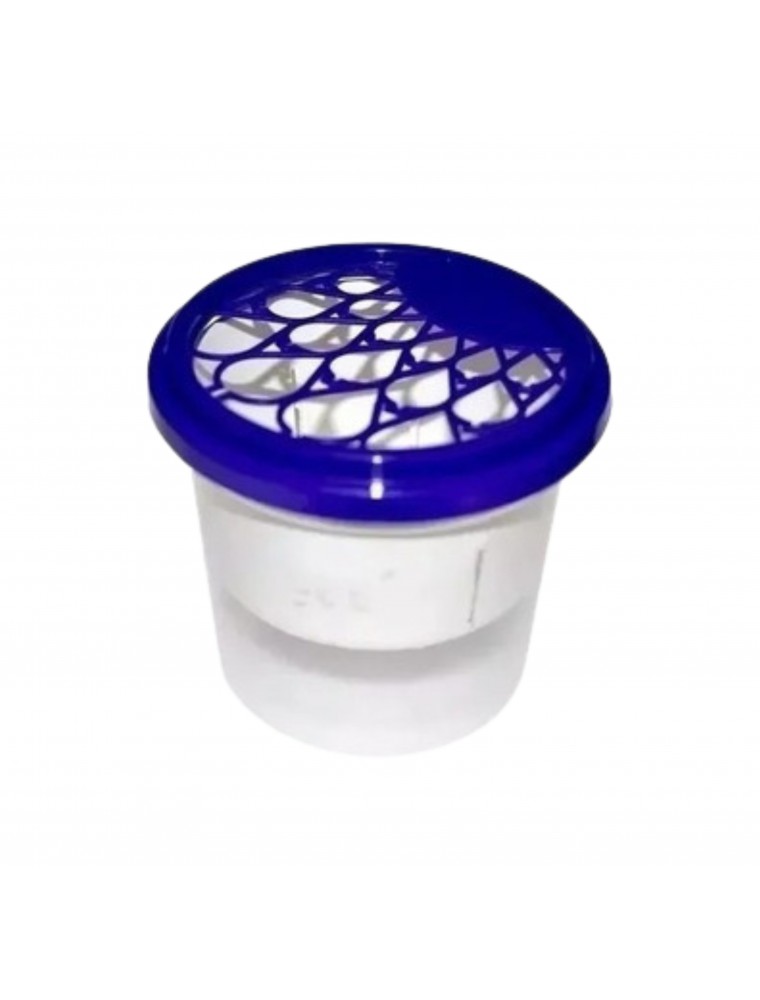 O pote para anti-mofo é composto por três partes. Uma tampa vazada para que o cloreto de cálcio tenha contato com o ar, um pote transparente e uma base plástica. Este pote é reutilizável, quando o produto acabar, apenas jogue a água fora, lave o pote e poderá reutiliza-lo novamente.