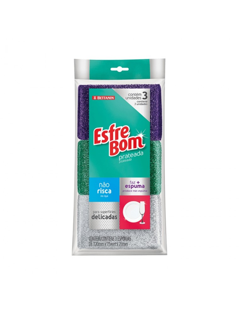 Esponja de Aço Metálica Retangular com 3 Unidades – EsfreBom (Bettanin)