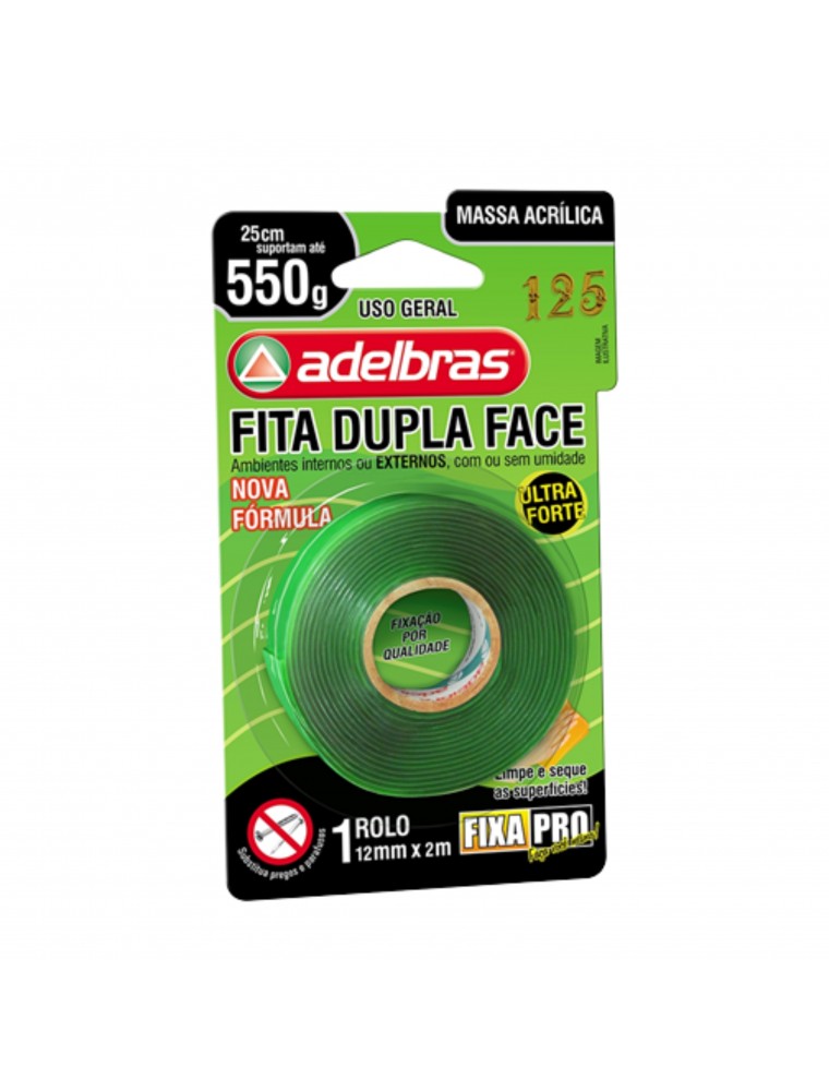 FITA DUPLA FACE TRANSPARENTE 12MM X 2 MT (VERDE) ADELBRAS